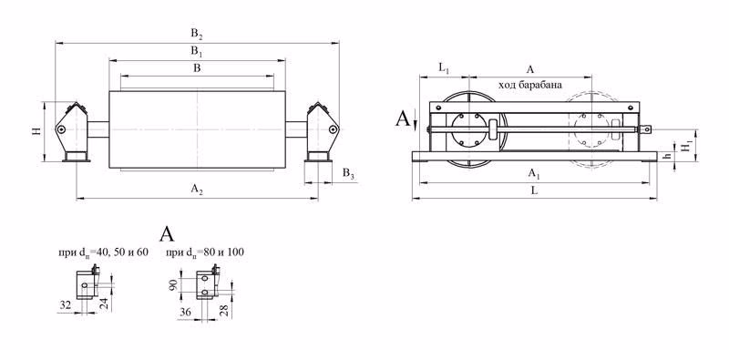 Условн. обознач. dп, мм А A1 A2 B1 B2 B3 H H1 h L L1 Вращ. частей Общая